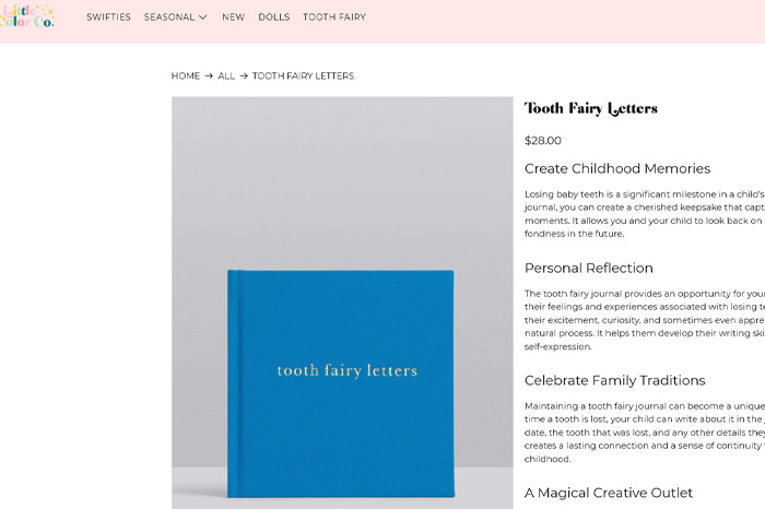 The site Little Color Co, at the link https://littlecolorco.com/products/tooth-fairy-letters features Tooth Fairy letters that double as journals.